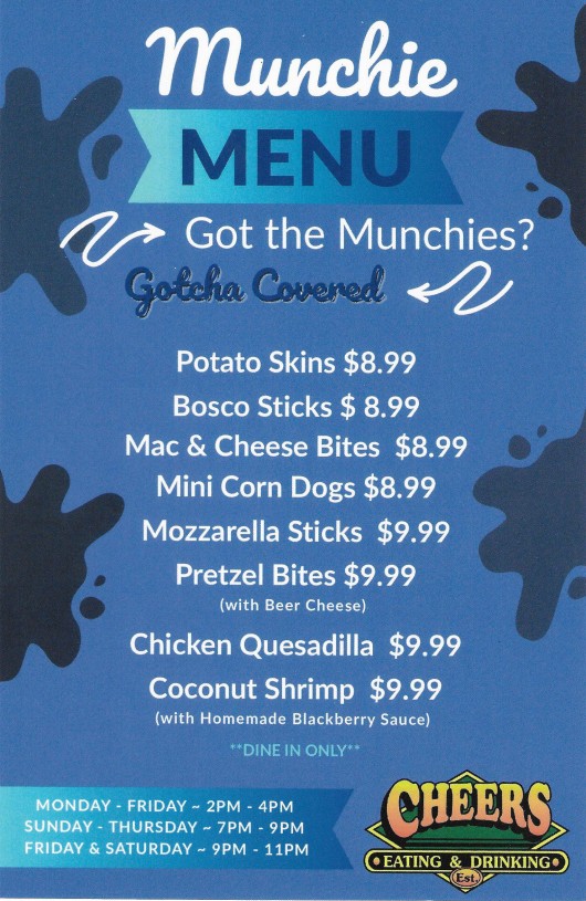 Enjoy any domestic bottled beer or well drink for $3.00. Cheers is the place to be for Happy Hour!